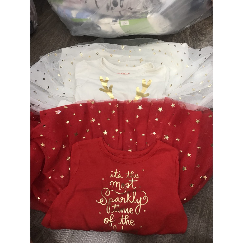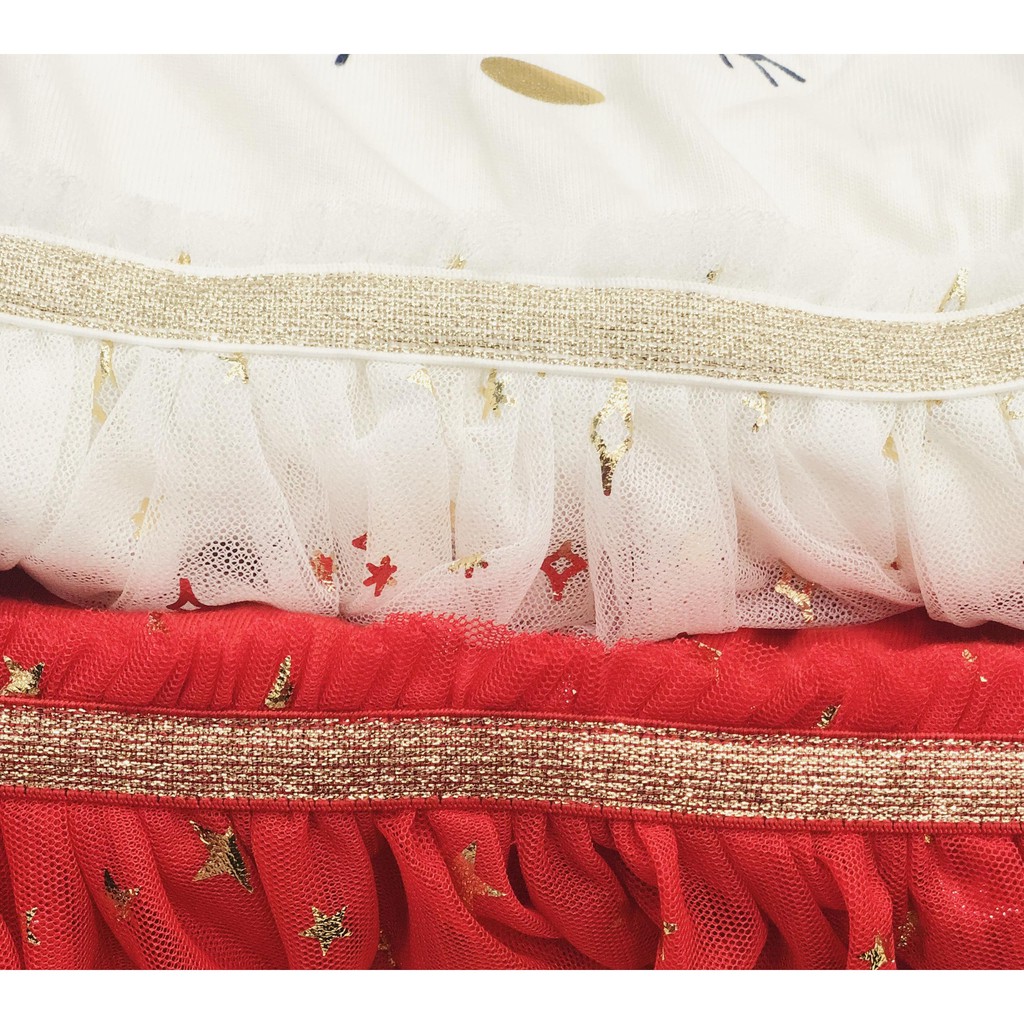 Tông màu đỏ và trắng rất nổi bật được viền lưng thun kim tuyến rất đẹp mắt.