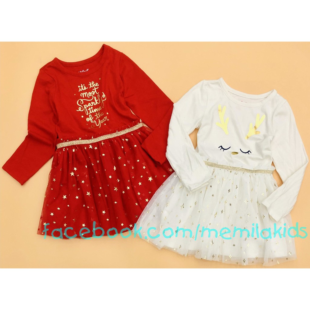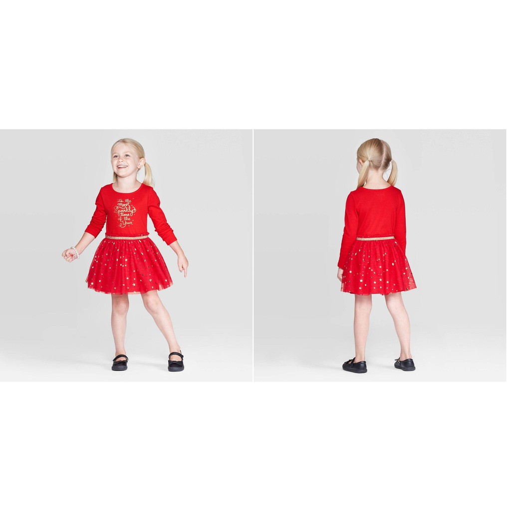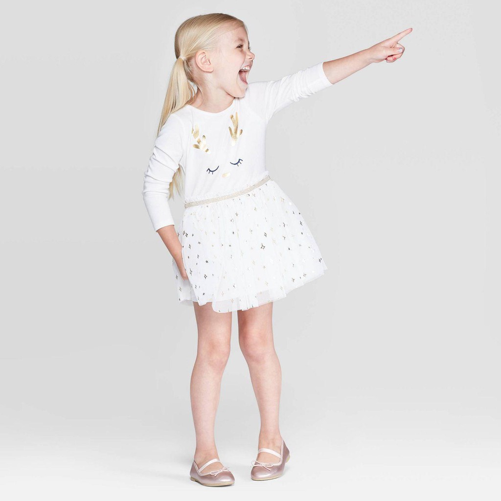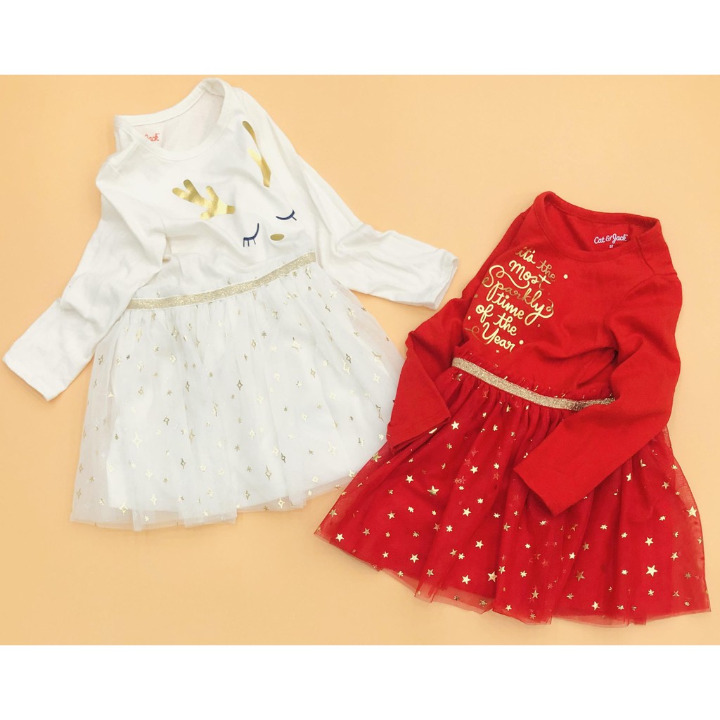 🎈 Đầm thun Cat & Jack bé gái tay dài thân áo chất thun cotton mềm mịn, mát tay, co giãn, cho bé thoải mái khi mặc, họa tiết in nhũ.