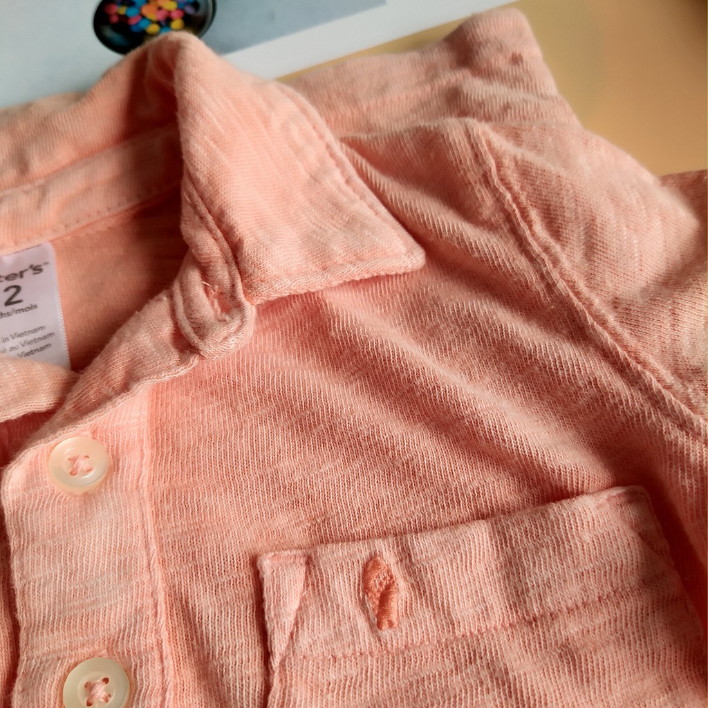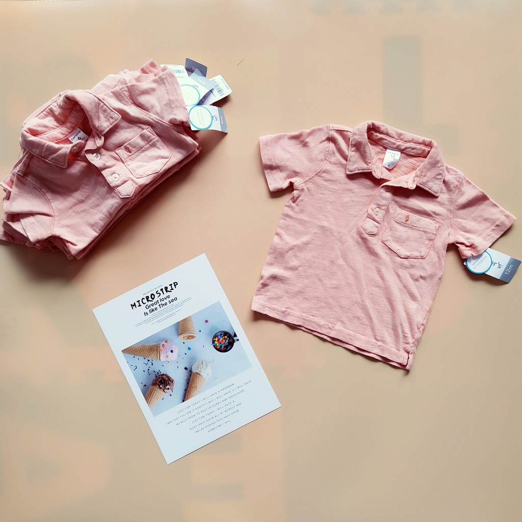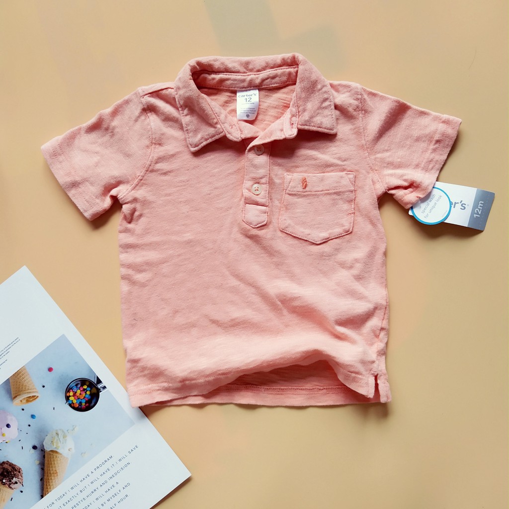 🎈Áo thun Carter's tay ngắn bé trai chất 100% cotton, màu cam wash nhẹ & cổ lật lịch sự, thoải mái, dễ phối đồ