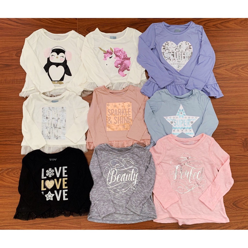 🎈Áo thun Place bé gái chất cotton hoặc chất len mềm, mỏng nhẹ. Áo có đính kim sa đắp nổi hoặc phối voan rất điệu đà.