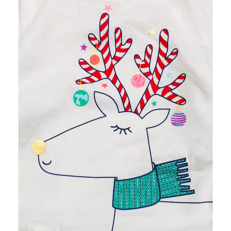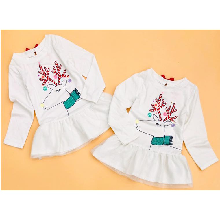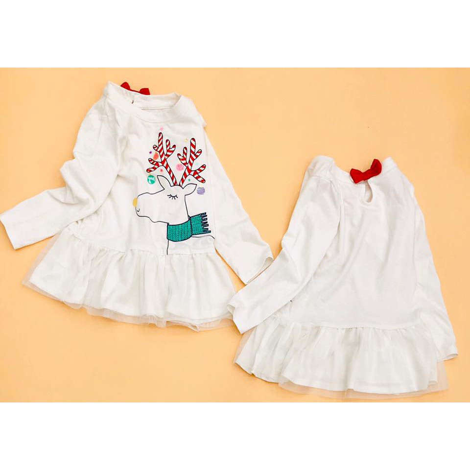 🎈Áo váy Cat&Jack bé gái tay dài: thân áo chất thun cotton mềm mịn, phối lớp voan lưới kiểu peplum điệu đà. Hoạ tiết cho mùa giáng sinh, hình in sắc nét. Bé phối legging hay mặc như đầm đều được. Áo tay dài rất hợp mùa ạ.